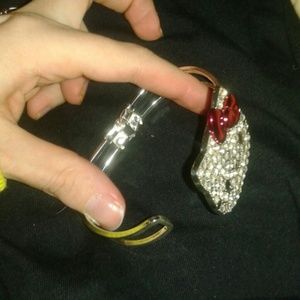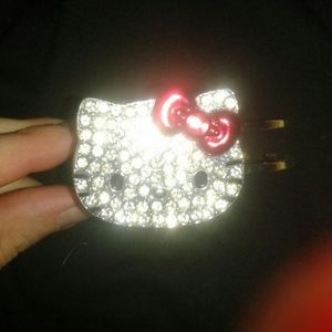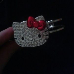BRAND NEW Sanrio Hello Kitty silver metal hinge bracelet/cuff. Kitty face is made up of shiny silver rhinestones. Bow is shiny red. Heavy and chunky! :-D