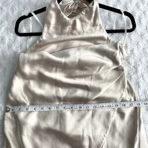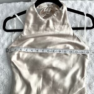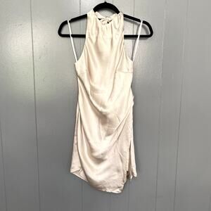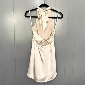 NEW Hello Molly Oyster Cream Heavy Heart Halter Satin Open Back Mini Dress S