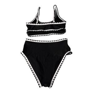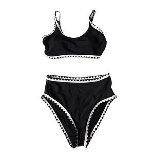 NEW Herseas SWIMSUIT Womens SM Bikini Black White Whip Stitch 2 Piece High Waist