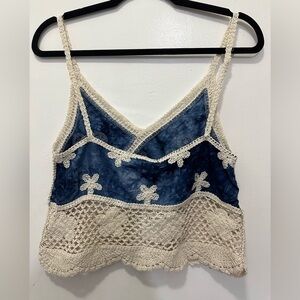 NWT! Crochet top with tye dye and crochet body. Spaguetti crochet straps. Delicate and bohemian.