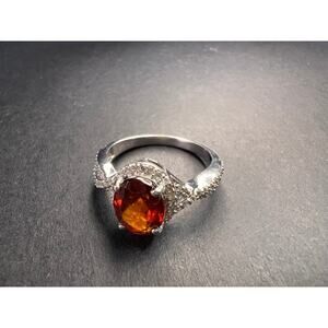 NEW Hessonite garnet and zircon ring in sterling silver size 7