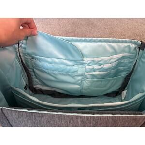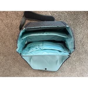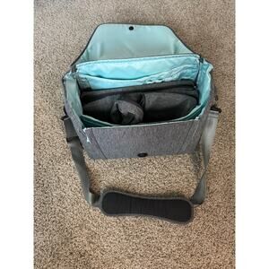 Never used Large diaper bag with messenger strap, backpack straps, changing pad, insulated pouch, stroller caddy.