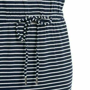 Elevate your wardrobe with this stylish Hilary Radley Women's Short Sleeve Dress, featuring a Navy and White Striped print on a Spandex fabric. This A-line dress falls above the knee, offering a casual yet chic look perfect for spring and summer. The dress boasts a comfortable round neck and short sleeves, with a closed back and a flattering fit suitable for regular body types. It's easy to care for, with machine washable (gentle cycle) and line dry instructions.