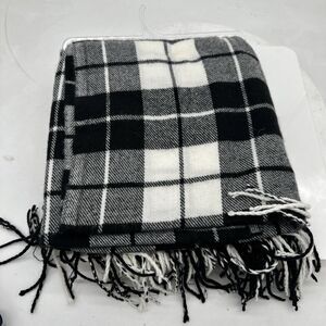 NEW Hildie & Jo White Black Plaid Scarf Blanket 28 x 82 NWT Winter Warm