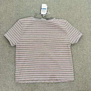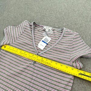 NEW! Hippie Rose Ribbed Henley Knit Top Striped V-Neck XL Cotton Blend Short Sle
