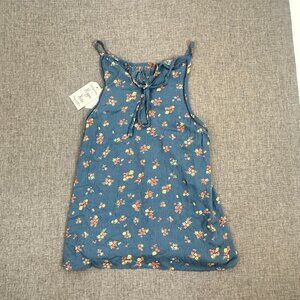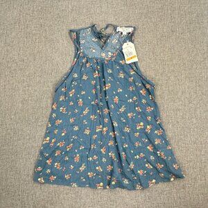 NEW! Hippie Rose Tank Top Sleeveless Small Teal Floral Rayon Relaxed Fit