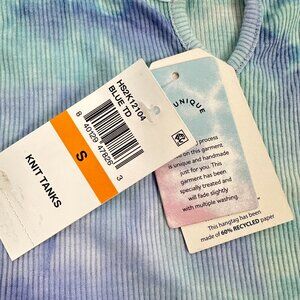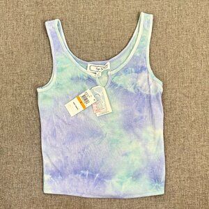 NEW! Hippie Rose Tie Dye.Tank Top Small Purple Greenish Blue Scoop Split Neck