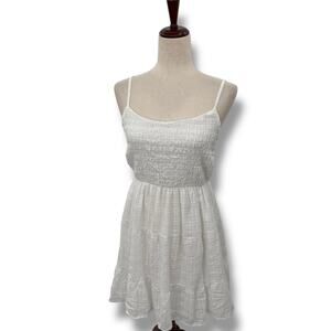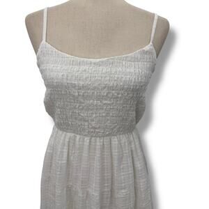 NEW Hippie Rose White Smocked Sundress Size Large Mini Plaid A-Line