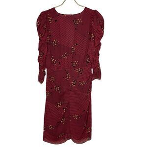 NEW Hofmann Copenhagen Lea Ruched Georgette Dress in Mahogany Print Size Small
