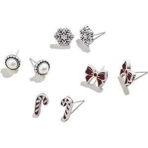 MEANINGFUL SYMBOLS: This beautiful set of 4 pairs of stud earrings features crystals, pearls, candy canes and bows, to bring you joy through the holidays