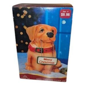 NEW Holiday Time Vintage Dog Sign Lab Labrador Merry Christmas Cookie Jar