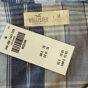 NEW Hollister 100% cotton lightweight raw hem plaid button down medium N…