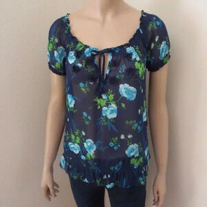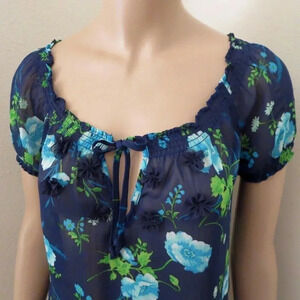 Gorgeous Hollister Womens Floral Sheer Top with Pretty Flower Embellishments!