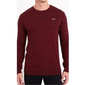 NEW Hollister Sweater Icon Logo Knit Pullover in Burgundy Mens Size XS