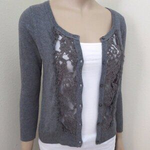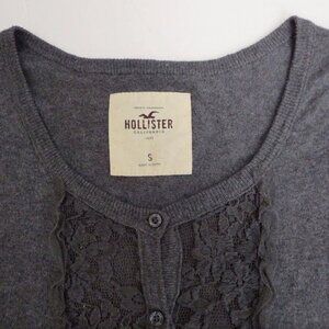 NEW Hollister Women Floral Lace Cardigan Size Small Gray Top Blouse Shirt