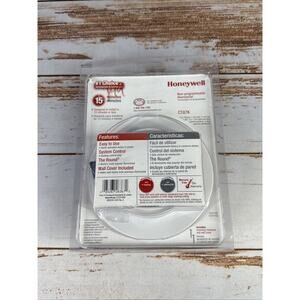 This is a Honeywell Round Heat Only Non-Programmable Thermostat model CT87K in white plastic material. It is wall-mounted and features a round thermostat shape with mechanical control style. The thermostat is designed for use with space heaters and operates on low voltage. It includes a temperature sensor technology and is designed for corded electric power source. The product is brand new and comes sealed in the original packaging.
