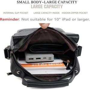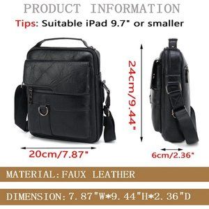 Structure: mens handbag make it got a huge capacity. Multiple pockets meets your daily needs and keep your belongs organized. has enough space for carrying up your 9.7" iPad,phone, keys, walet, power bank etc. Ideal for daily and travel use.