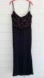 - Black floral lace bodice, beige/nude inner layer, underwire cups, boned bodice, adjustable straps, maxi length, back zipper with hook and eye closure, lined