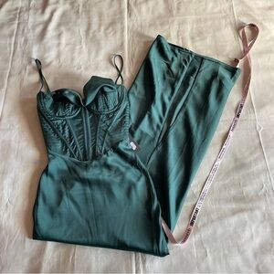 Tags: House of CB corset, Charmaine, green corset, forest green, silk satin dress, corset maxi dress, strapless corset, date night, formal, elegant, prom, event, romantic, evening, charity ball, glam, NWT.