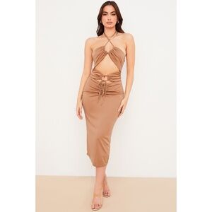 NEW House of CB Kasia Cutout Dress Caramel Large