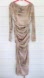 - Long sleeves, ruched, back slit, back zipper with hook and eye, lined except for sleeves
