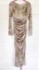 - Long sleeves, ruched, back slit, back zipper with hook and eye, lined except for sleeves