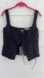 - Scallop lace trim at neckline and straps, sleeveless, satin covered buttons at bust, open front, lined