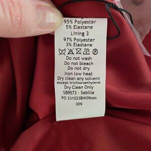 - 94% polyester 6% PU. Lining 1 100% polyester. Lining 2 95% polyester 5% elastane. Lining 3 97% polyester 3% elastane. Dry clean