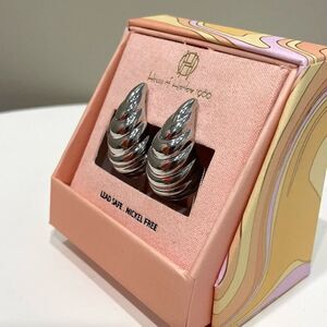 NEW House of Harlow 1960 Silver Hallow Water Drop Earrings