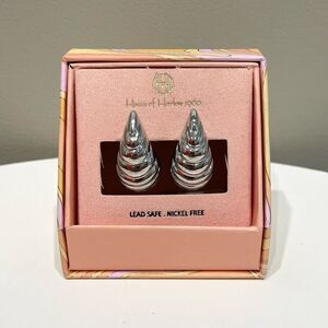 House of Harlow 1960 Silver Hallow Water Drop Stud Earrings NEW IN BOX