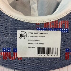 NEW Huf 1984 6-Panel Red White Blue Chambray Baseball Cap Hat Adjustable NWT
