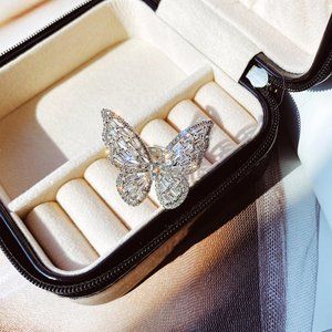 *NEW Huge 18K White Gold Diamond Butterfly Ring