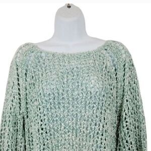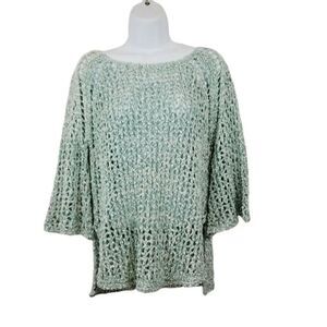 NWT Hummingbird Open Knit Bell Sleeve Turquoise Sweater