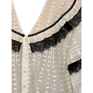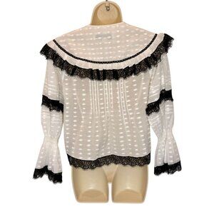 NEW Hunter Bell Black White Blouse Ruffles Lace V-Neck - Size M
