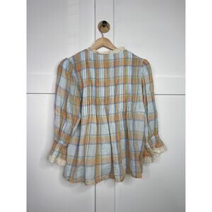 NEW Hunter Bell Pintuck 3/4 Sleeve Deep V-Neck Eyelet Trim Mia Plaid Top