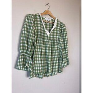 NEW Hunter Bell Pull Over Design High Neck Ruffled Mia Top Green Size: Small