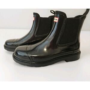 NEW Hunter Commando Chelsea Gloss Boot Women SZ 11 Block Heel Flexible G