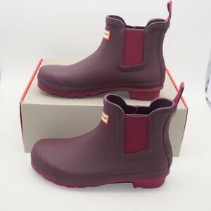 NEW Hunter Women's 8 Original Chelsea Waterproof Rain Boots Purple Burgundy