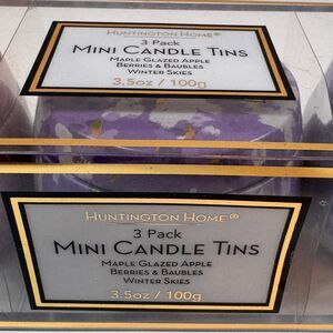NEW Huntington Home 3 Pack Mini Candle Tin Maple Apple Berries Winter Fall 3.5oz