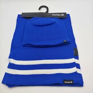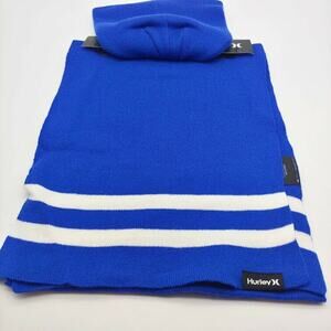 NEW Hurley Men's New Yorker Beanie & Scarf 2 Piece Set Blue White Stripe OS