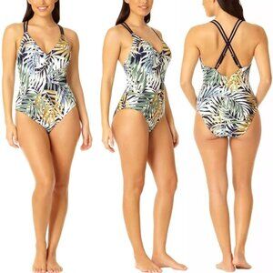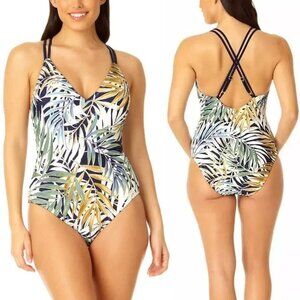 NEW Hurley Women's L One Piece Swimsuit Cayman Palms Tropical Leaf UPF 50+ Comfy