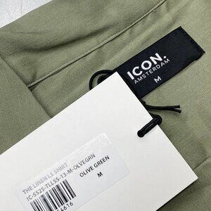 ICON Amsterdam Men’s Linen Long-Sleeve Button-Up Shirt – Olive – Size M