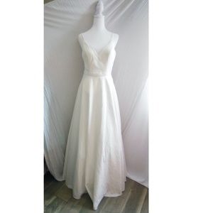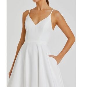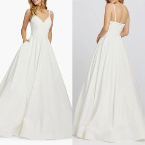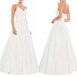 NEW IEENA For Mac Duggal WHITE Classic A-LINE V-Neck CREPE Wedding BALL GOWN 10