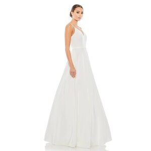 NEW IEENA Mac Duggal A-Line V-Neck Ballgown Women 10 White Classic Fit and Flare