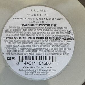 NEW ILLUME Woodfire Plant Based Candle 11.8 oz 335 g Metal Tin Bronze Butterfly