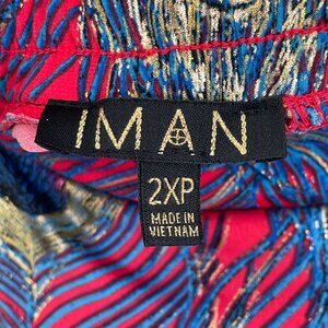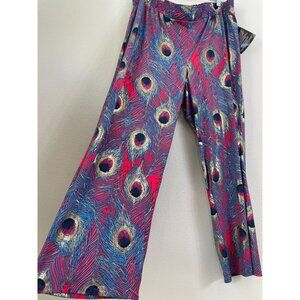 NEW IMAN Womens Plus 2XP Wide Leg Pants Peacock Feather Design Stretch Pull On
