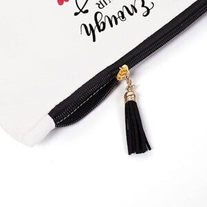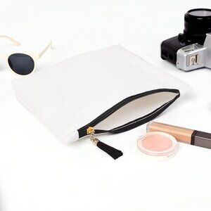 NEW IN BAG White Canvas Makeup Bag with Heartbeat Design Graphic and Tassel Zip