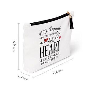 White makeup bag featuring a heartbeat design and tassel zipper. Great gift idea for nurses.