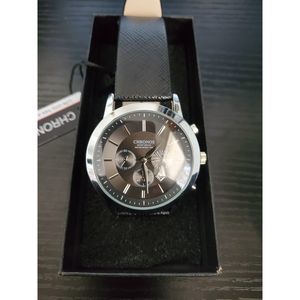 🔥 NEW IN BOX 42mm Chronos Men's Watch Leather Strap Calendar Business Watch
