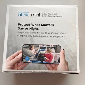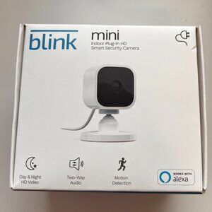 BRAND NEW. NEVER OPENED. Amazon Blink Mini - Compact indoor plug-in smart security camera, 1080p HD video. First 2 photos are stock images.